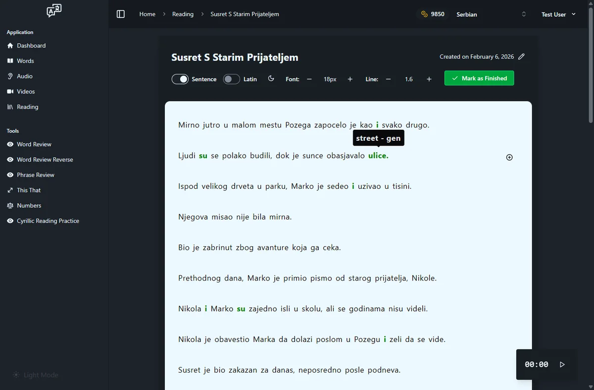 What began as a personal project to learn Serbian has turned into a helpful resource for anyone learning any language. We're still working on it, adding new features and improvements along the way. If you're just starting to learn the language or looking for new tools, we invite you to check out our platform and see if it works for you.